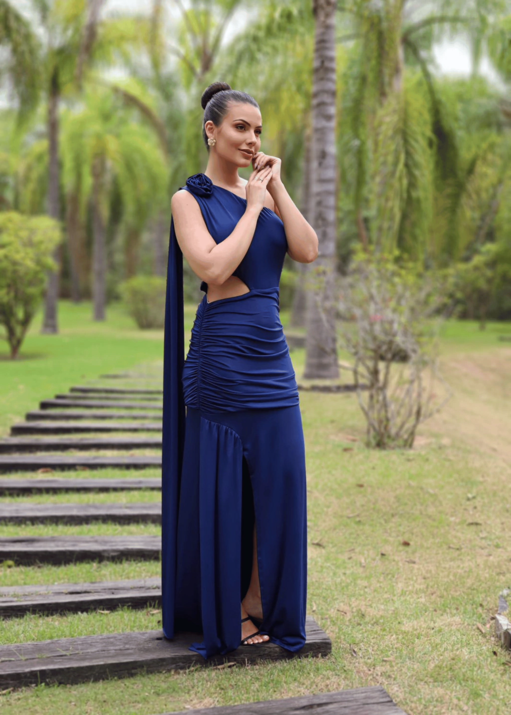 Saia longa com caimento elegante, ideal para festas e eventos formais.